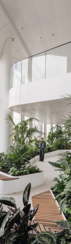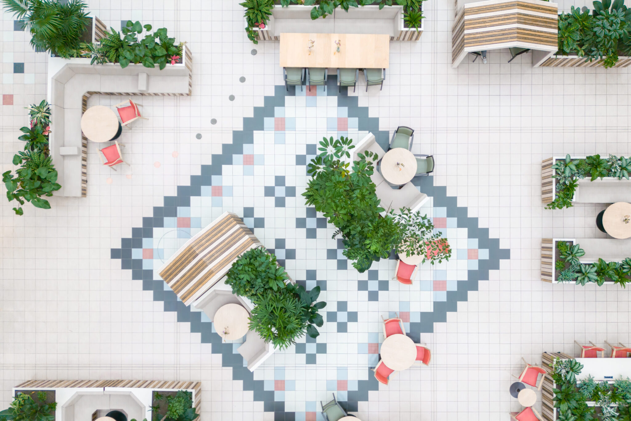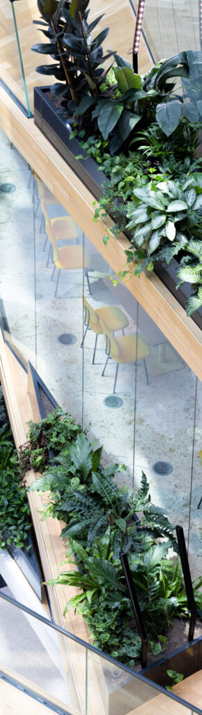 We design green oases embracing indoor landscapes, rooftop gardens, and urban farming. We work with clients such as CBRE, Uber, Booking.com, Miro, D/Dock, and more.