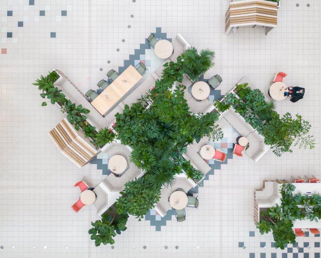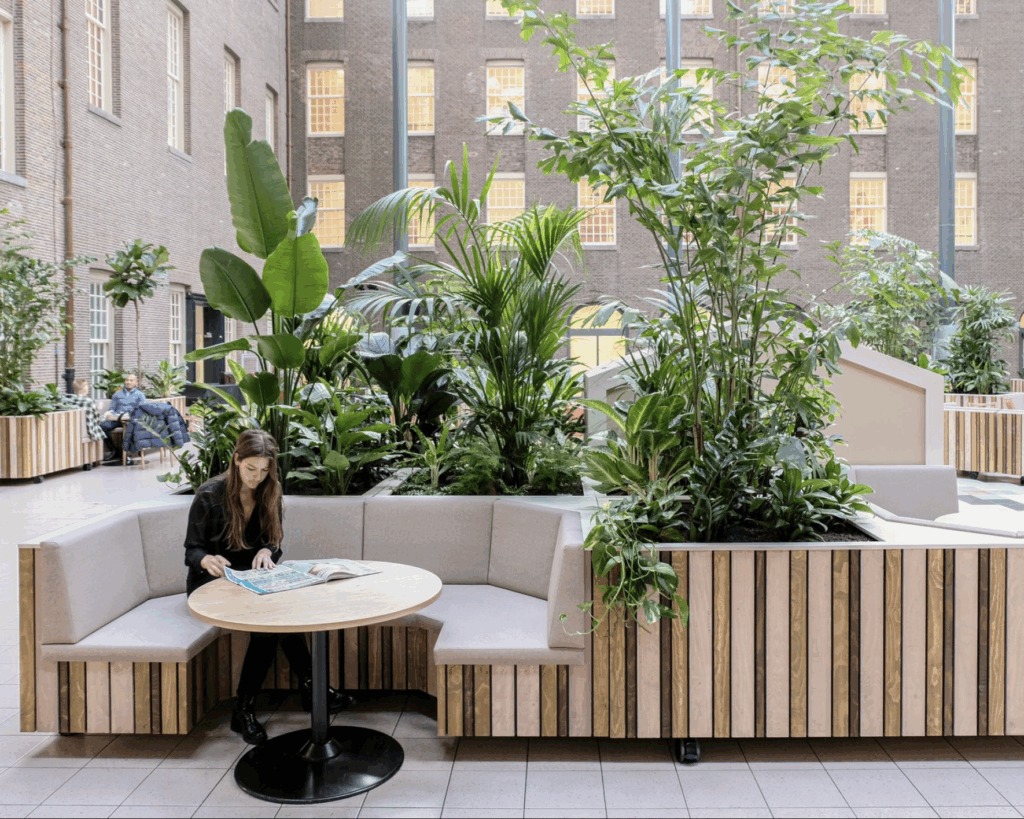 Dr. Sarphatihuis, located in Amsterdam’s Plantage district, was redesigned for Amsta to make it a more friendly space whilst keeping its flexibility. MOSS led the biophilic design, creating flexible, plant-filled atriums and communal areas. Fun fact: the modular “Moving Islands” planters allow spaces to transform for events or daily activities.