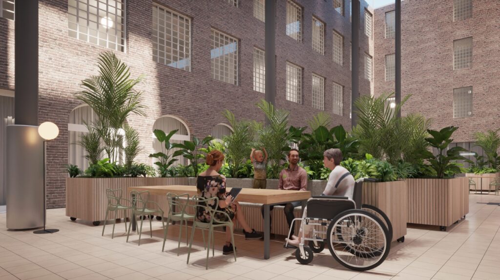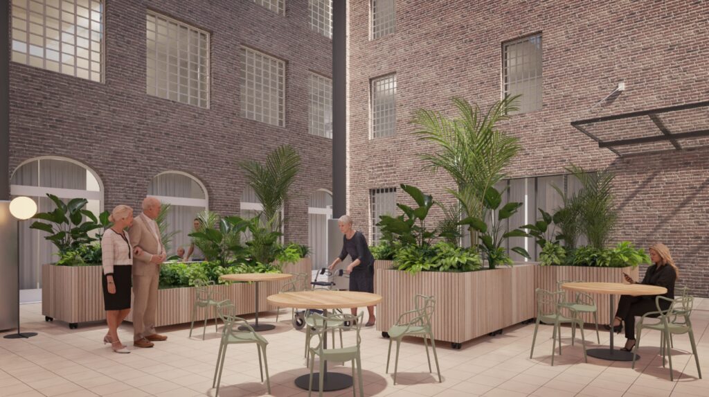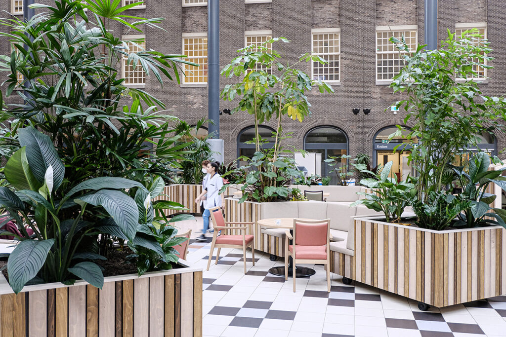 Dr. Sarphatihuis prioritizes circularity and environmental performance. Recycled materials were used in the used furniture and planters, demonstrating how thoughtful circular design can enhance quality while fostering healthy, resilient spaces for residents and staff alike. The modularity of the system also brings dynamism to the space and allows it to shift from a day setup to a setup for small events or even a setup for larger events or functions.