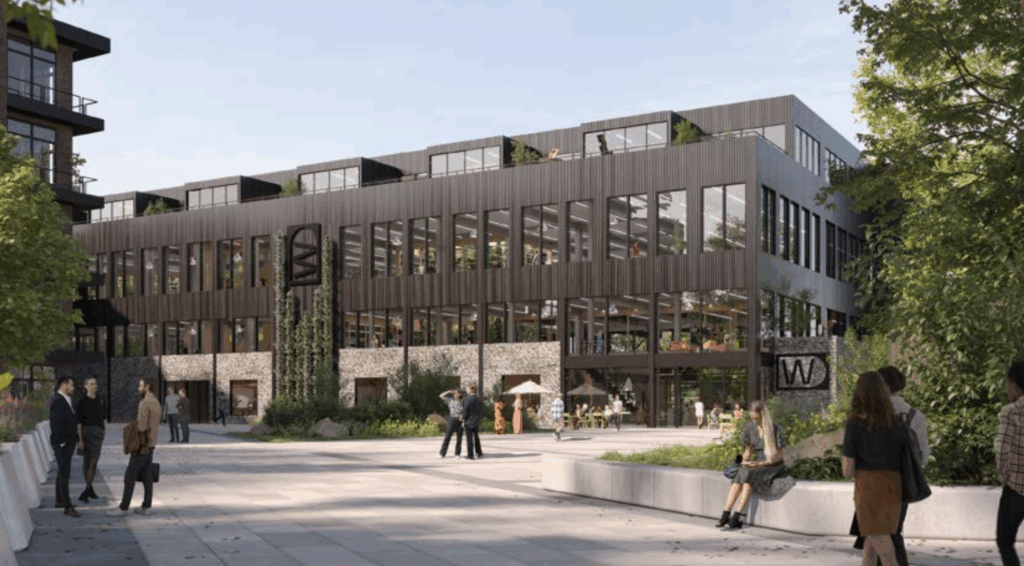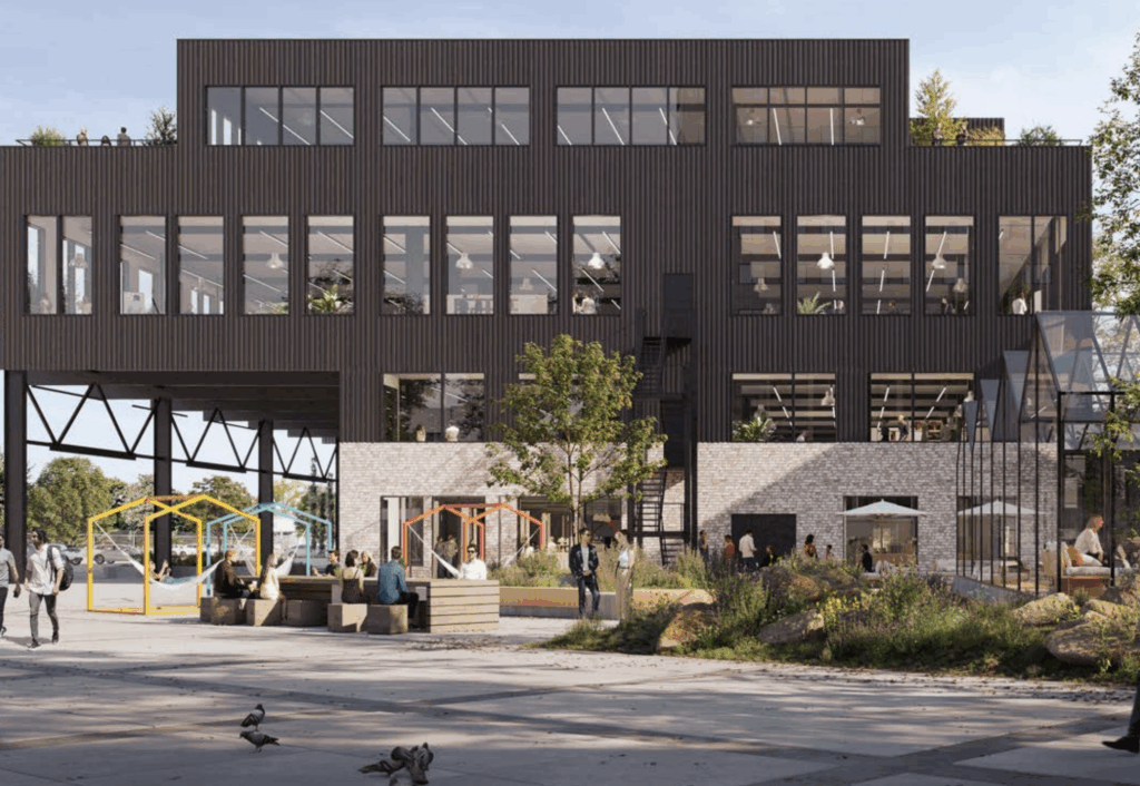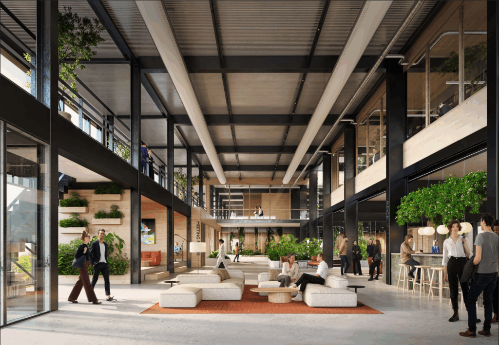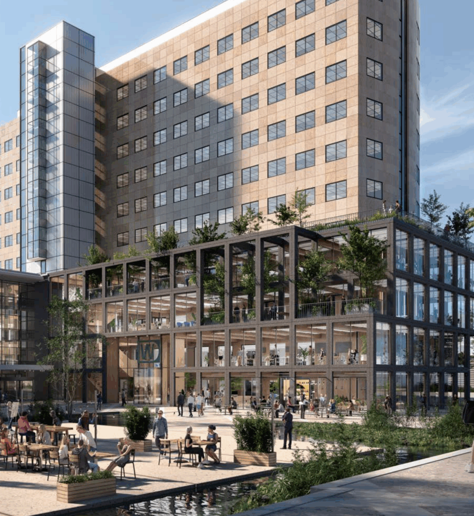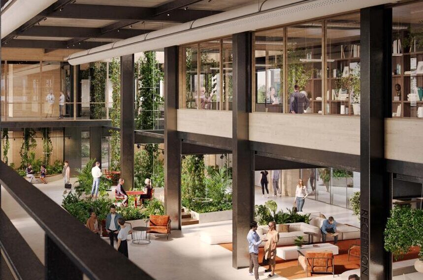 District West transforms a former industrial area near Amsterdam Sloterdijk Station into a vibrant office and campus environment. MOSS led the biophilic design. The design juxtaposes robust industrial architecture with lush greenery to create a dynamic and welcoming environment.