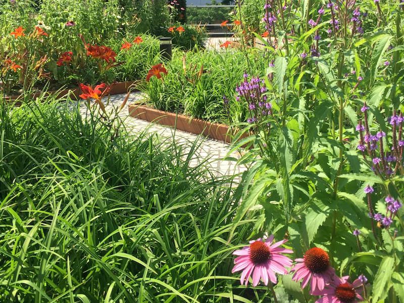 The sounds of the city do not reach this garden, rather it’s the chirping of birds that you’ll hear. In fact, 17 birds have breeding nests in the garden, while 6 other unique species have been spotted as visitors. Also breeding and hanging out here are other creatures such as insects and small mammals. The garden mainly contains of native and Stinse plant species, such as the Cranesbill, Deadman’s Finger, Yellow Monkshood, Spotted Lungwort, Purple-leaved Golden Veil and Spring Bellflower.