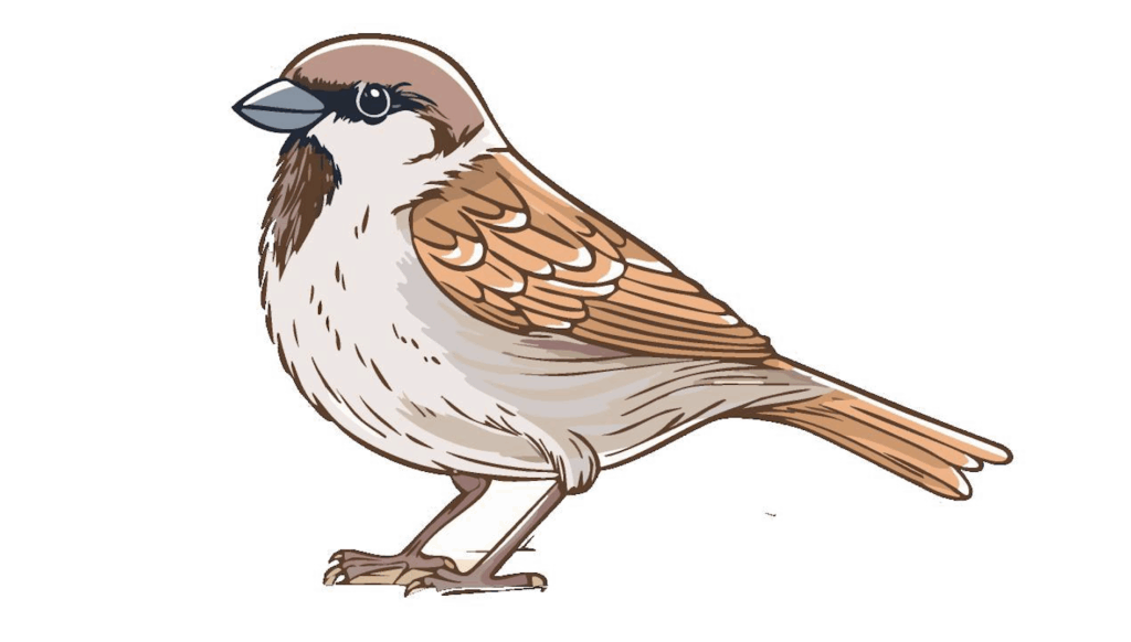 Story: The sparrow is your classic friendly neighbour who always hosts the best BBQs. Originally nesting in tree holes in warm open landscapes, they moved in with us thousands of years ago, attracted by our farms, crumbs, and warm nooks. Now, they live rent-free in roof eaves, chattering all day long.