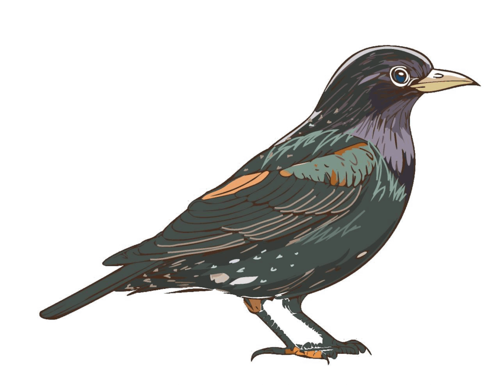 Story: Starlings are the life of the party – shimmering feathers, loud chatter, and expert impersonations. Originally woodland dwellers, they now nest in building cavities and gather in large flocks to perform aerial dances called murmurations before roosting in urban trees.