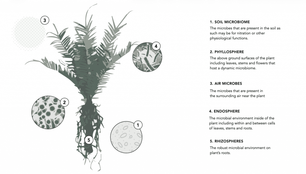 As a result, there has been an unhealthy build-up of indoor pollutants. However, there is a recent understanding that plant-associated microbiota play a role in combating such health issues mainly through the phyllosphere (see diagram below). In fact, new evidence shows that indoor plants, beyond improvement of mood and indoor air quality, are capable of increasing the quality and quantity of the indoor microbiome (ibid).