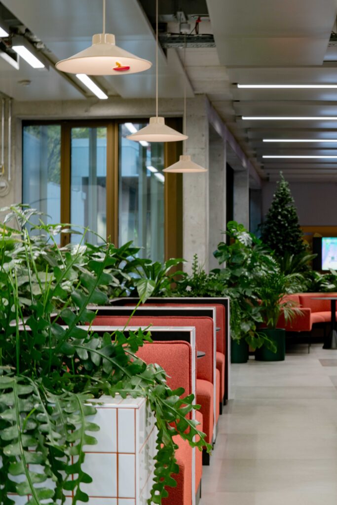We integrated greenery across 1,900 m² of workspace, from immersive welcome areas, greenhouses to flexible terraces. Through careful grow-light planning and custom planter systems, we ensured that plants thrive while enhancing the space’s functionality and atmosphere.
