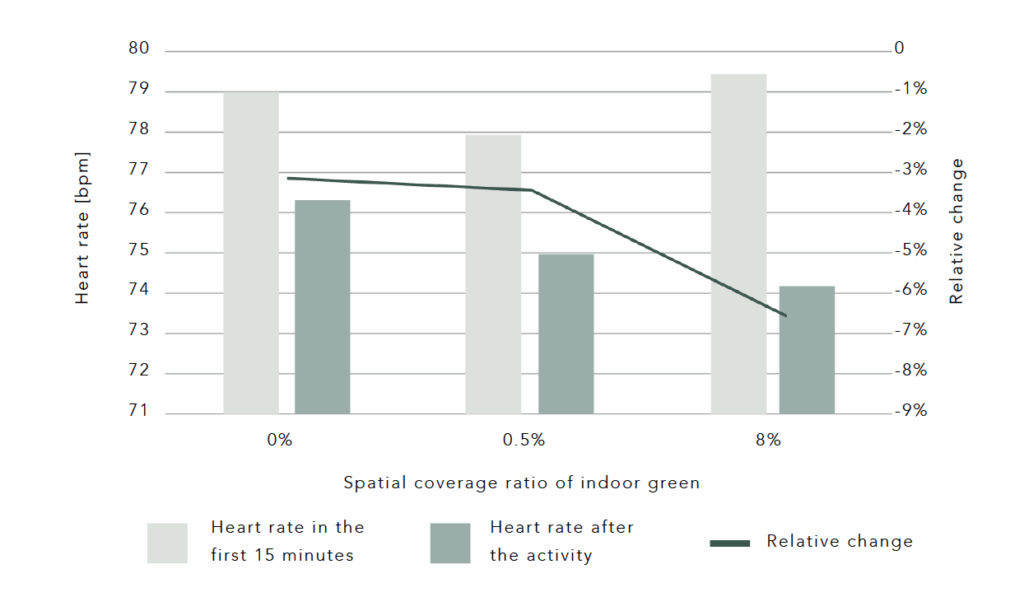 The study looked into the effect of different volumes of indoor greenery on employees’ perceived and physical variables of stress, productivity, and workplace satisfaction.