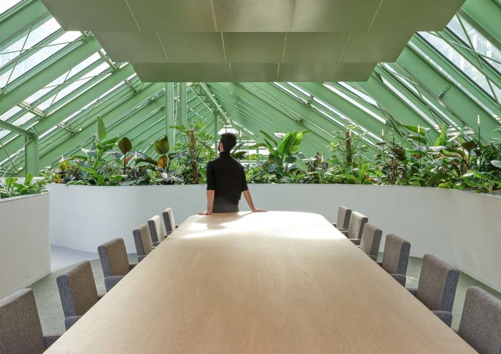 The B73 project was led by Studio PROTOTYPE and ZENBER Architecten, with MOSS responsible for the green design. Namely the Orangerie, which now has a layered vertical gardens and greenery integrated into furniture, walls, and functional decor.