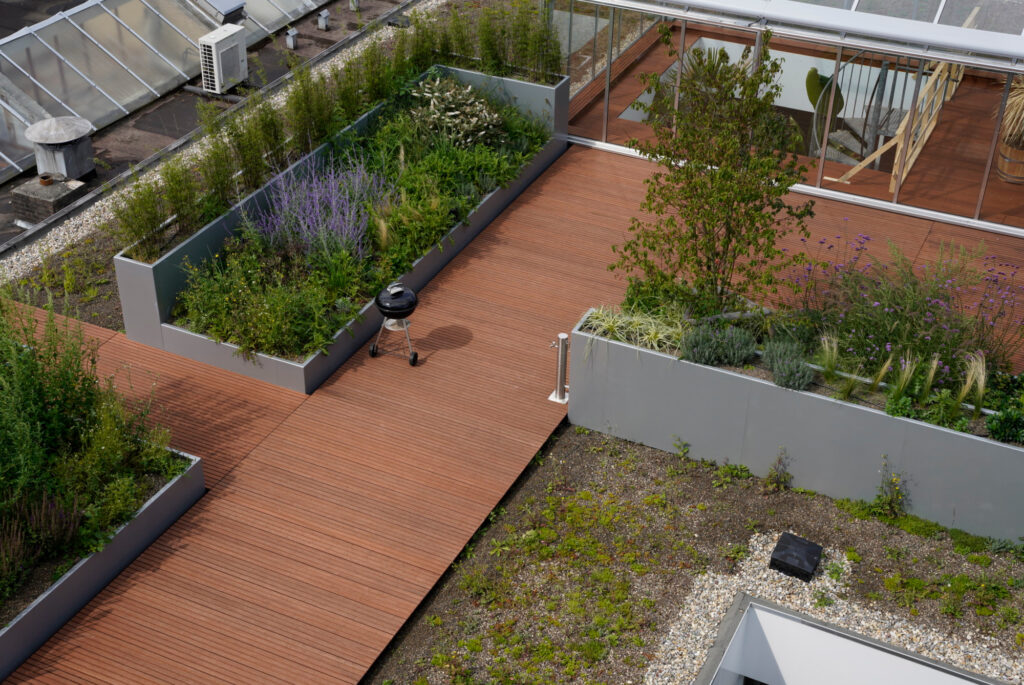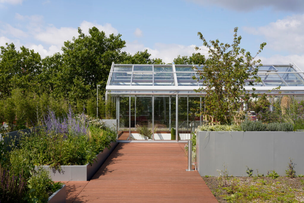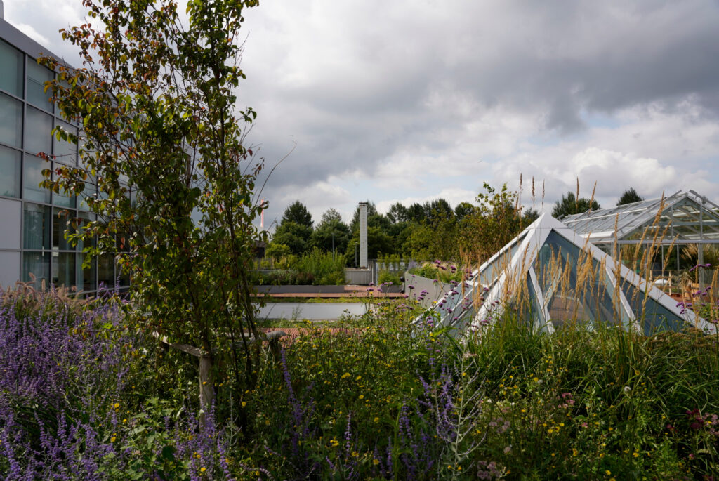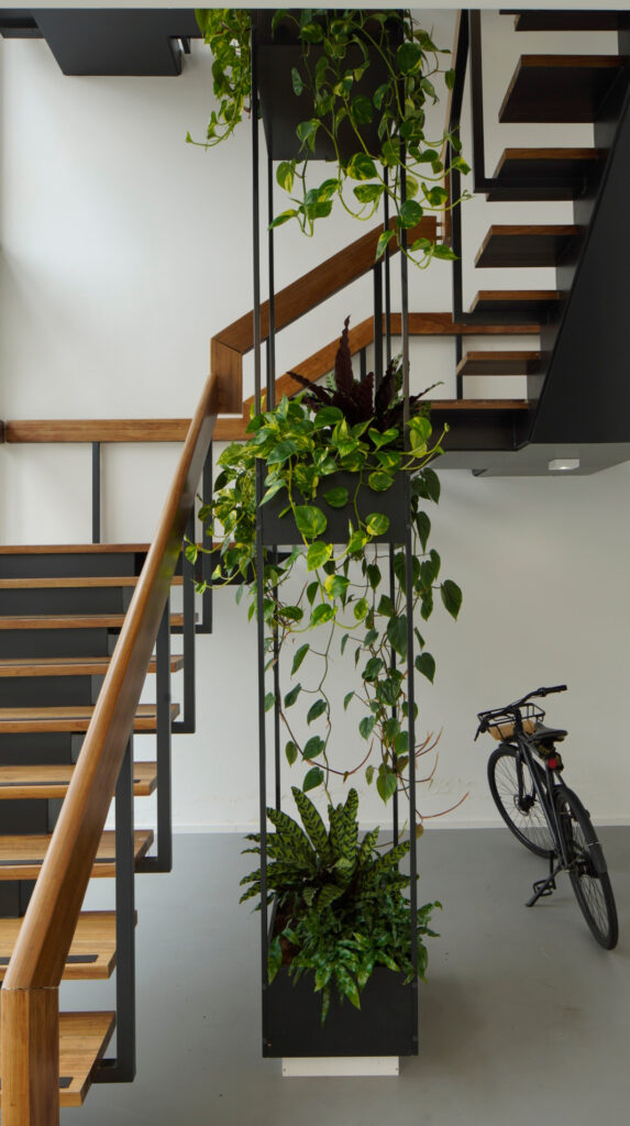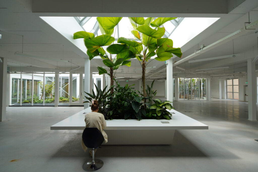 We were responsible for the interior and exterior planting concept, focusing on biophilic design to enhance the work environment. Our design includes “jungle tables,” a winter garden, and a rooftop terrace with Mediterranean greenery, creating year-round lushness. The goal was to build a workspace that feels alive, reducing stress and improving productivity.