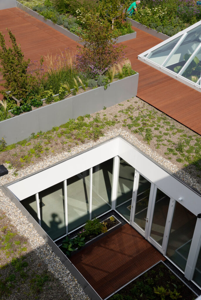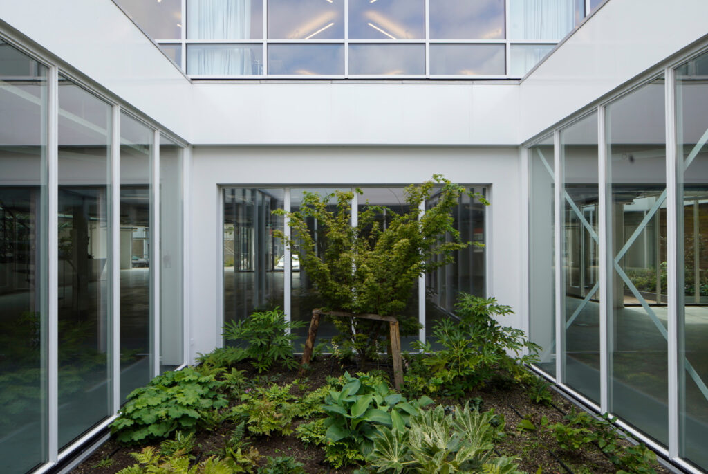The concept revolved around blending the robust industrial character of the building with soft, natural elements. Sunken courtyards and rooftop greenery create layered experiences, inviting occupants to engage with nature on multiple levels. By integrating daylight, diverse textures, and plant species, we created a space where architecture and landscape can interact.
